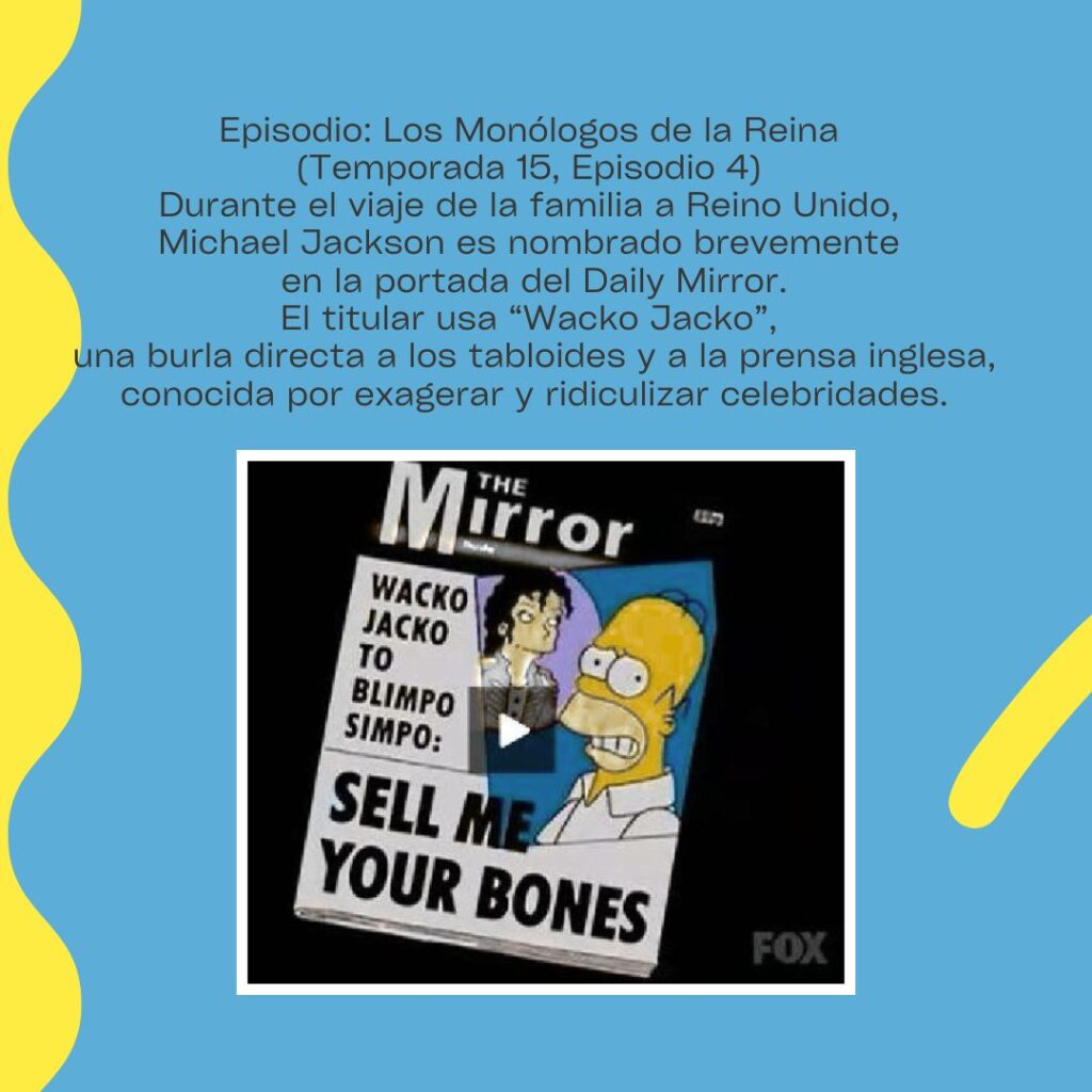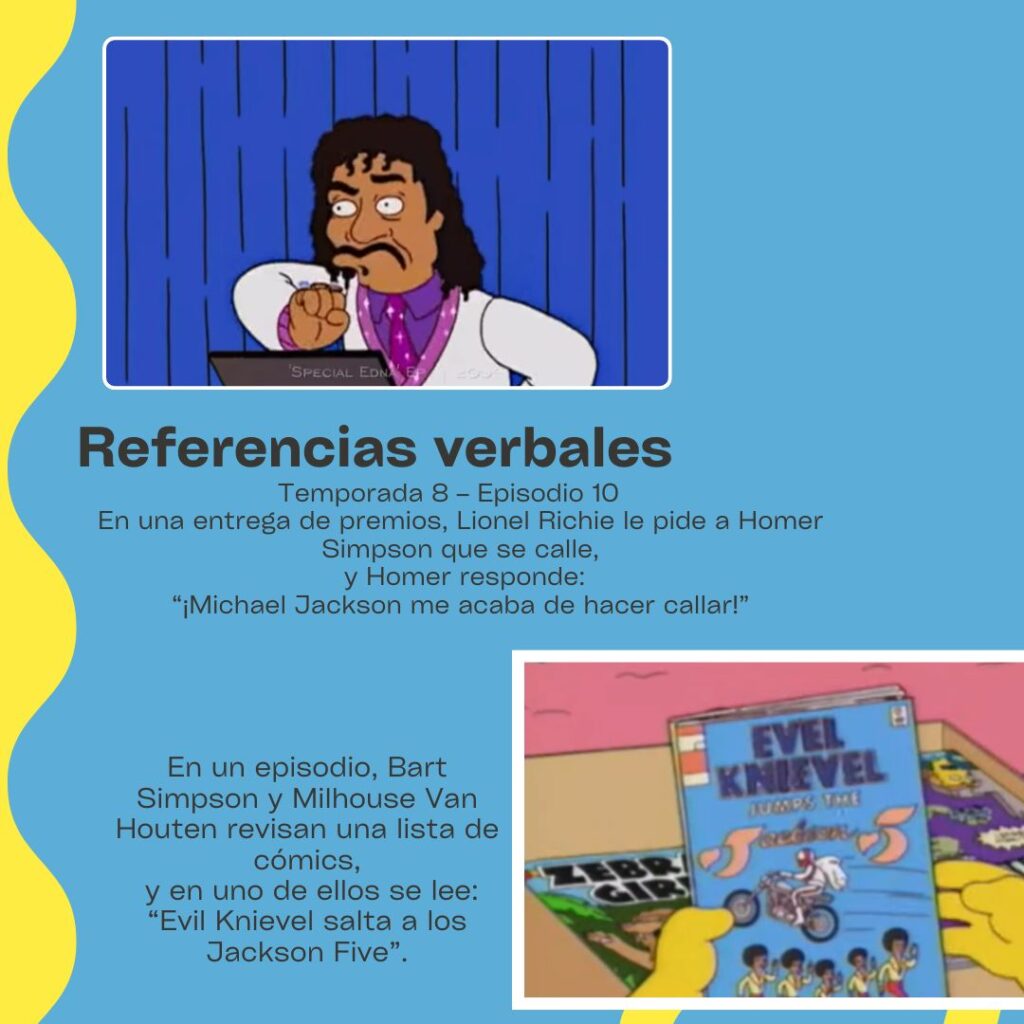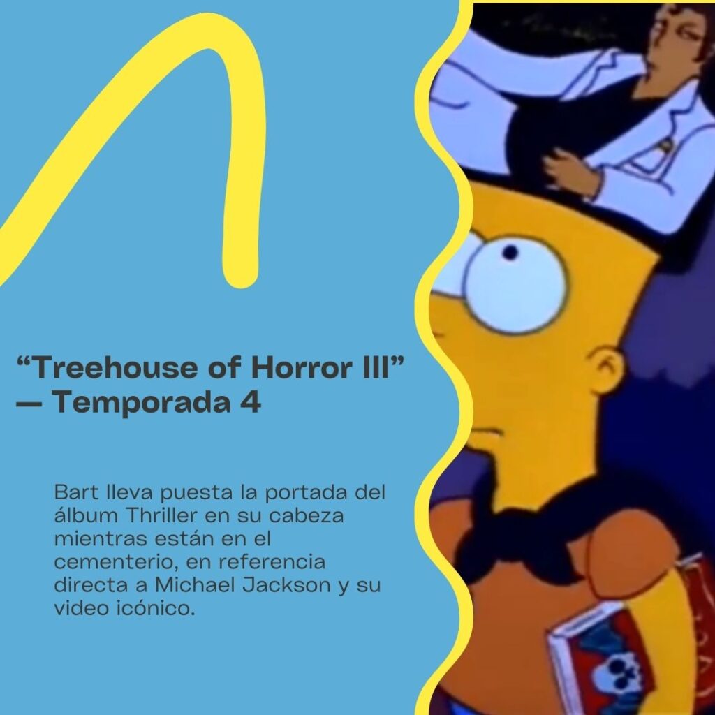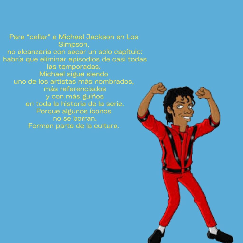 No bastó con eso. Por eso nos tomamos el trabajo —porque Michael amaba Los Simpson y Los Simpson amaban a Michael— de reunir casi todos los episodios en los que se lo nombra o se le hace algún guiño.